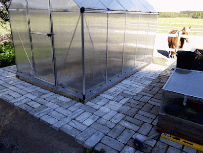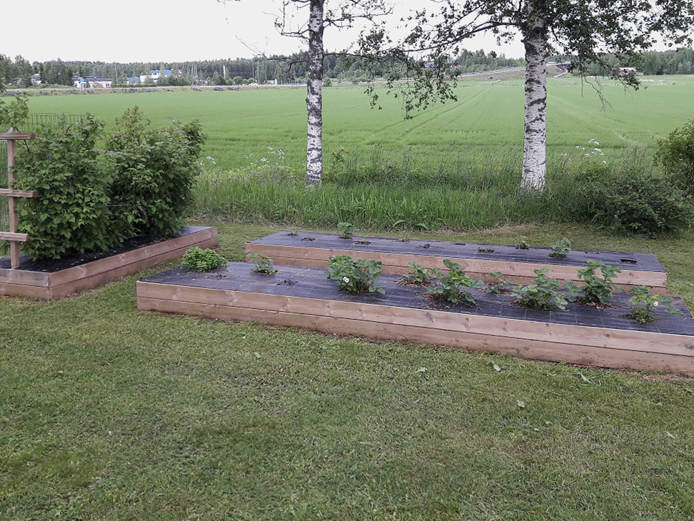 Kokeilimme viime kesänä ensimmäistä kertaa kasvattaa avomaankurkkuja ja kesäkurpitsaa isoissa pyöröpaaleissa. Se osoittautui erityisen toimivaksi ratkaisuksi, joten niin teimme nytkin. Kasvit eivät ole niin hallalle arkoja, kun ovat korkeammalla. Paali sitoo myös hyvin lämpöä ja kosteutta.